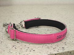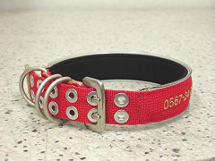※刺繍の色は、デザイン性を考慮した上で、出来るだけはっきりと読み取れる色を選んでいます。個人情報が取り沙汰される昨今ですが、ある程度情報を開示しておかないと、「万が一の際に連絡が来ない・・・・」ということも考えられます、第三者の方が、迷子犬を確保した際に、どのくらいの時間、引き留めていられるか、また、犬に慣れ親しんだ人ばかりではないと言うことも、あらかじめ理解しておく事も大事なことだと思います。 |